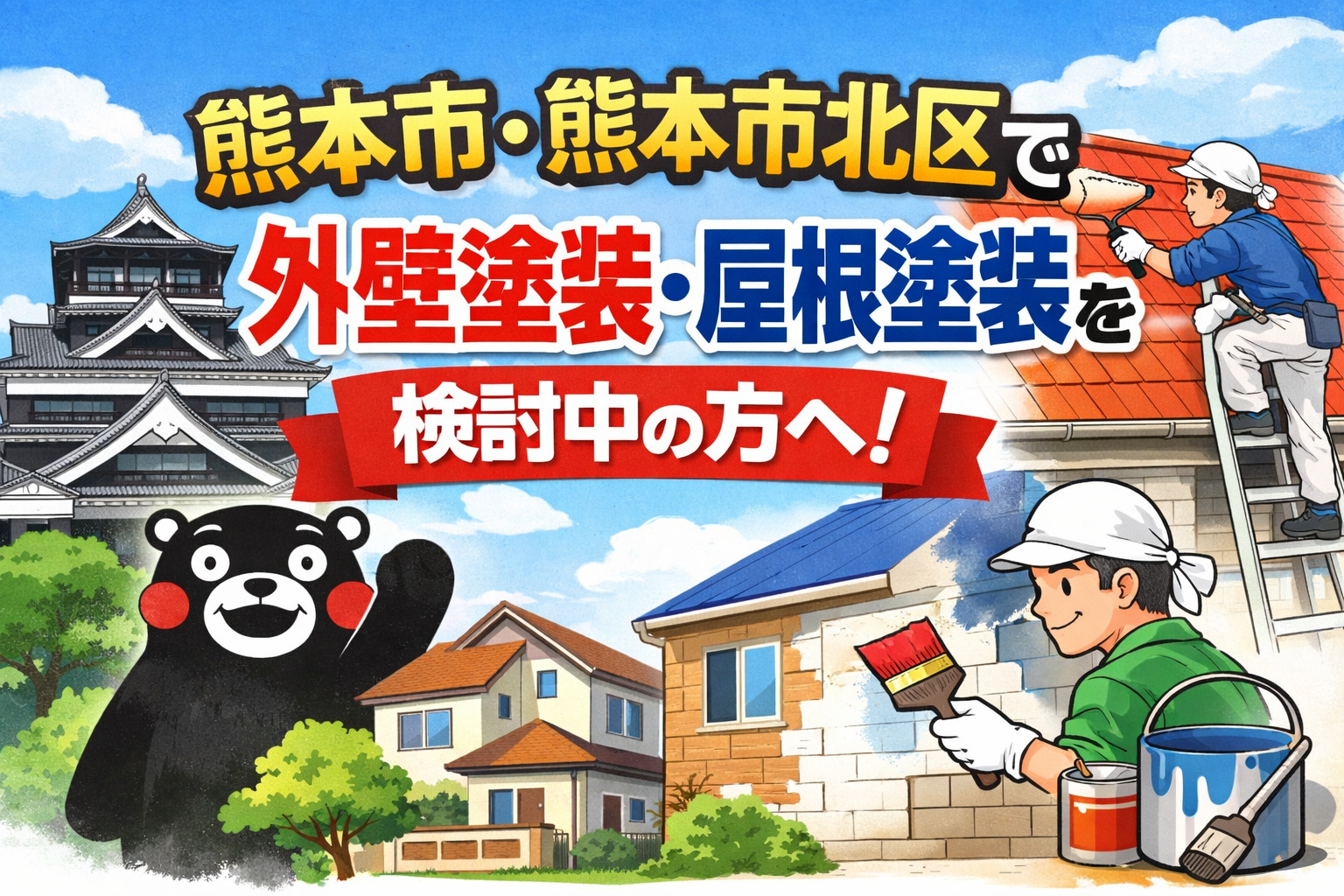 弊社は熊本市北区を拠点として一般住宅の屋根・外壁、アパート店舗等の塗り替えをメインに建物のリフォーム全てに対応させて頂いております。