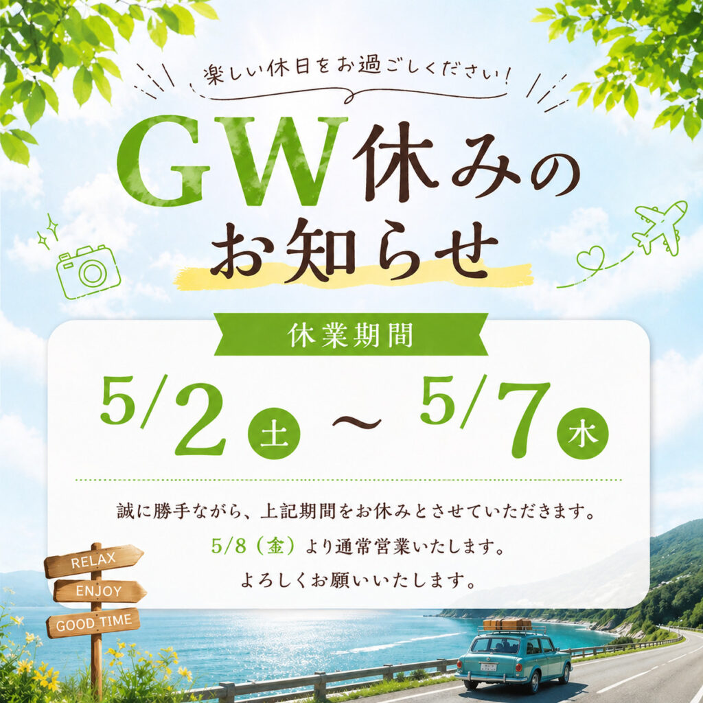 - 2026年GW休業期間のお知らせ