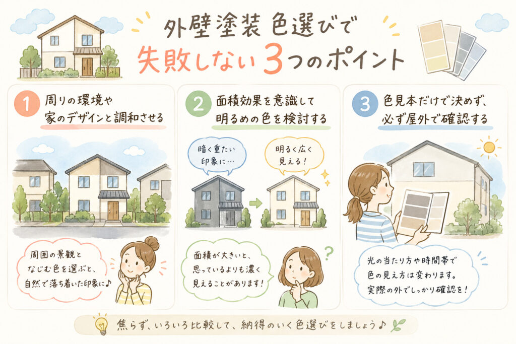 熊本市で外壁塗装・屋根塗装を行う際、「どの色にするか」は仕上がりを大きく左右する重要なポイントです。