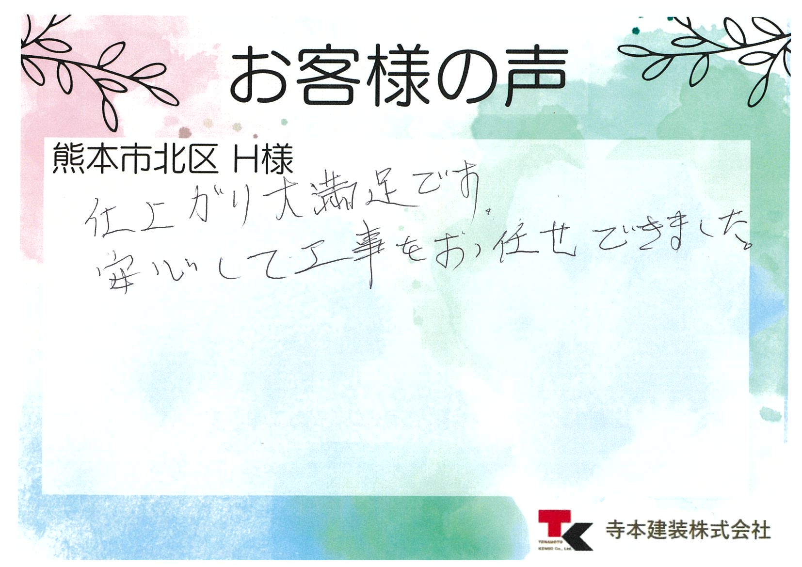 H様、このたびは数ある塗装業者の中から弊社をお選びいただき、誠にありがとうございました!