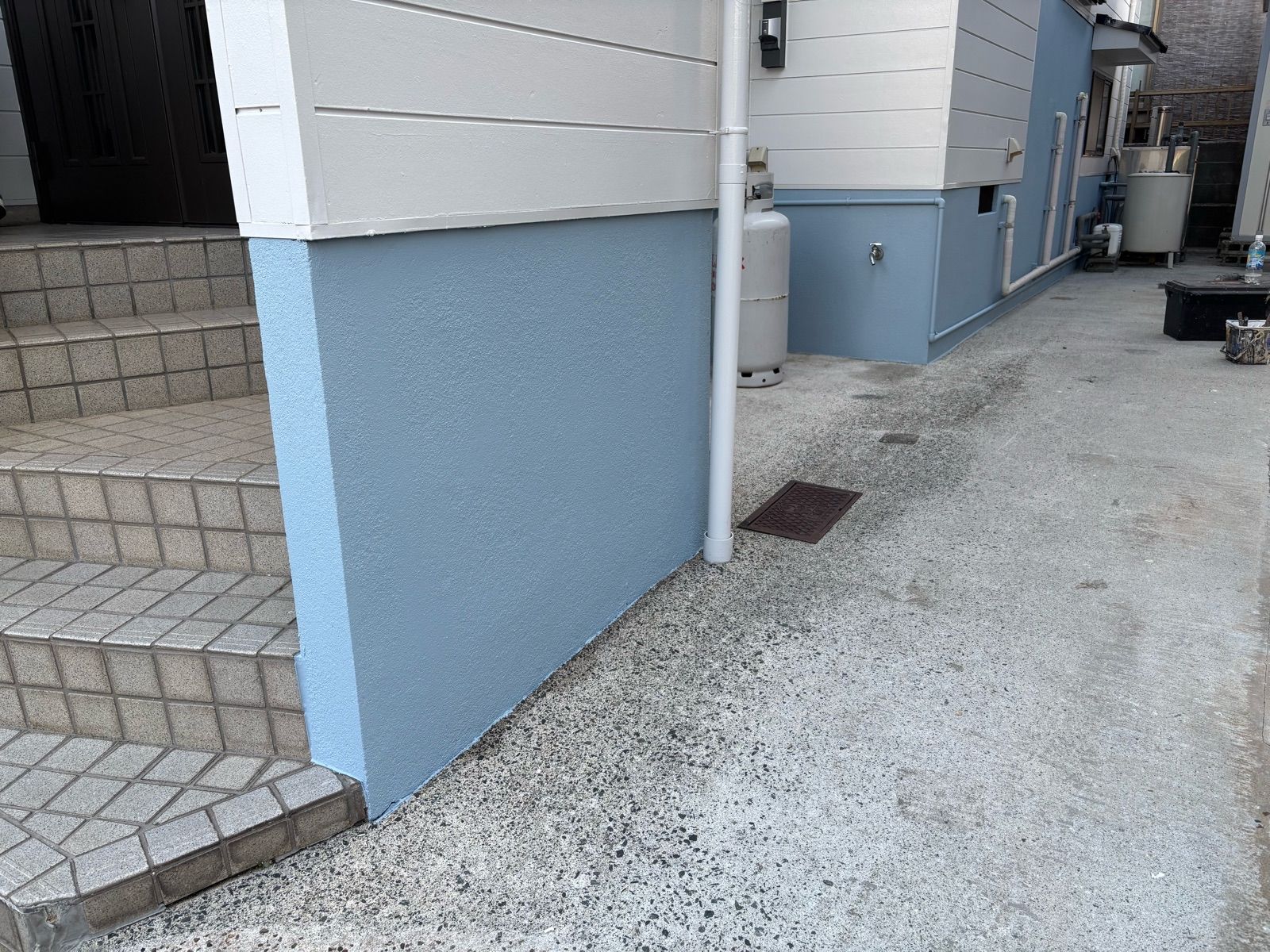 今回、しっかり洗浄&下地処理をしてから、ブルーグレーの塗料でキレイに塗装させていただきました!