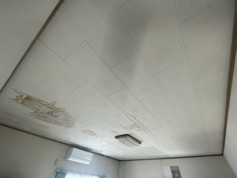 確認すると、過去の雨漏りによって天井に大きなシミができており、天井ボード自体も一部劣化していました💦