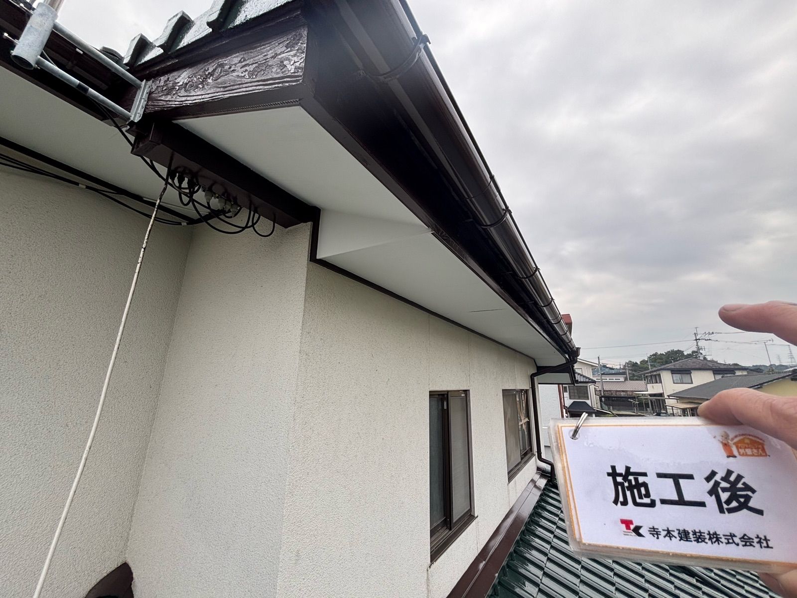 傷んでいた軒天は補修を行い、通気性と耐久性に優れた塗料でしっかりと仕上げています。