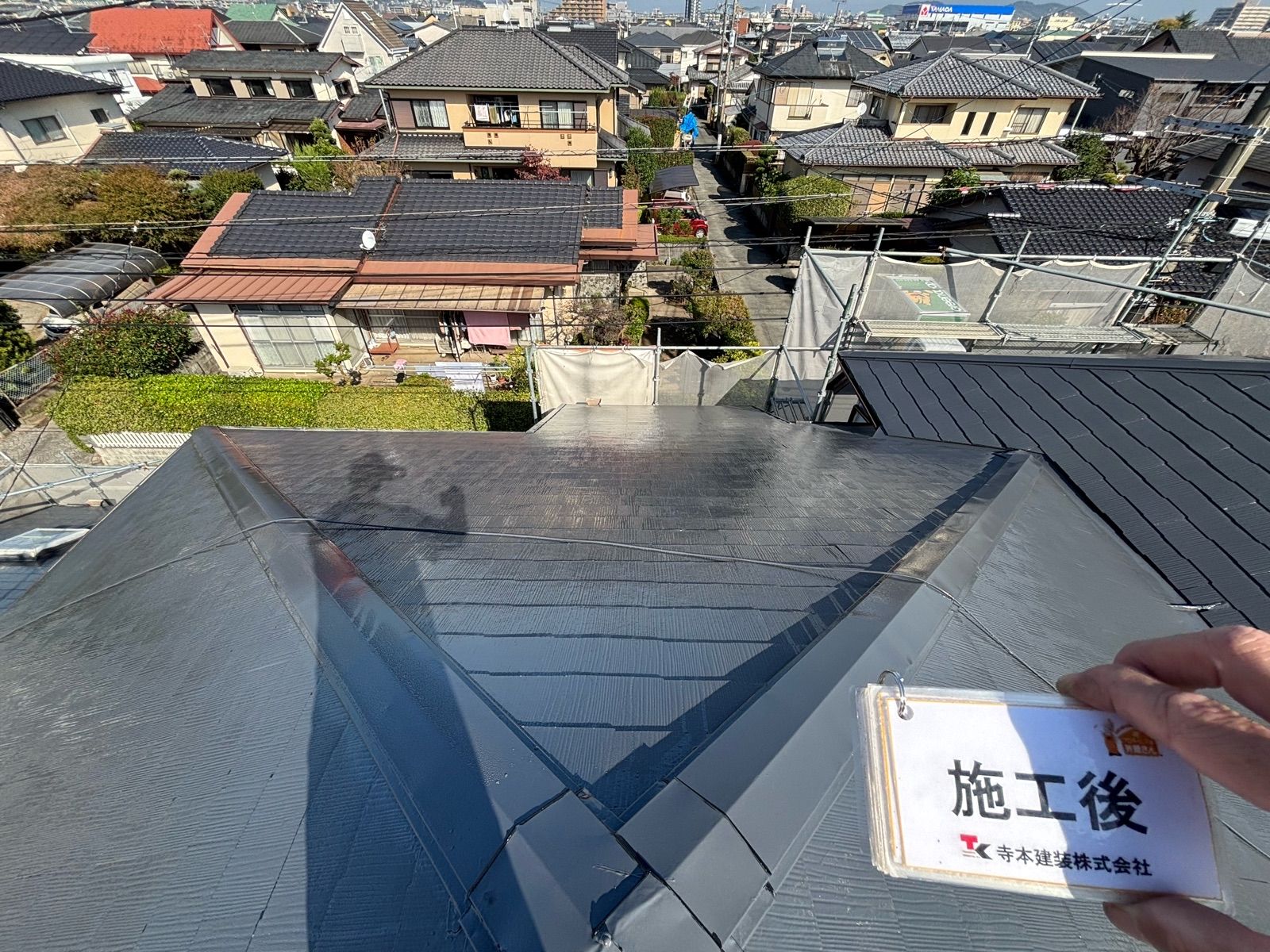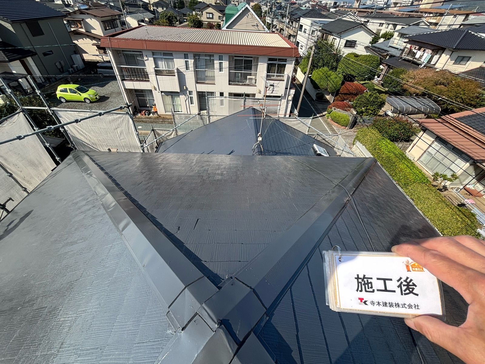 完成後のグレイ系の屋根はとても上品で、建物の印象がきれいに引き締まりました😊✨