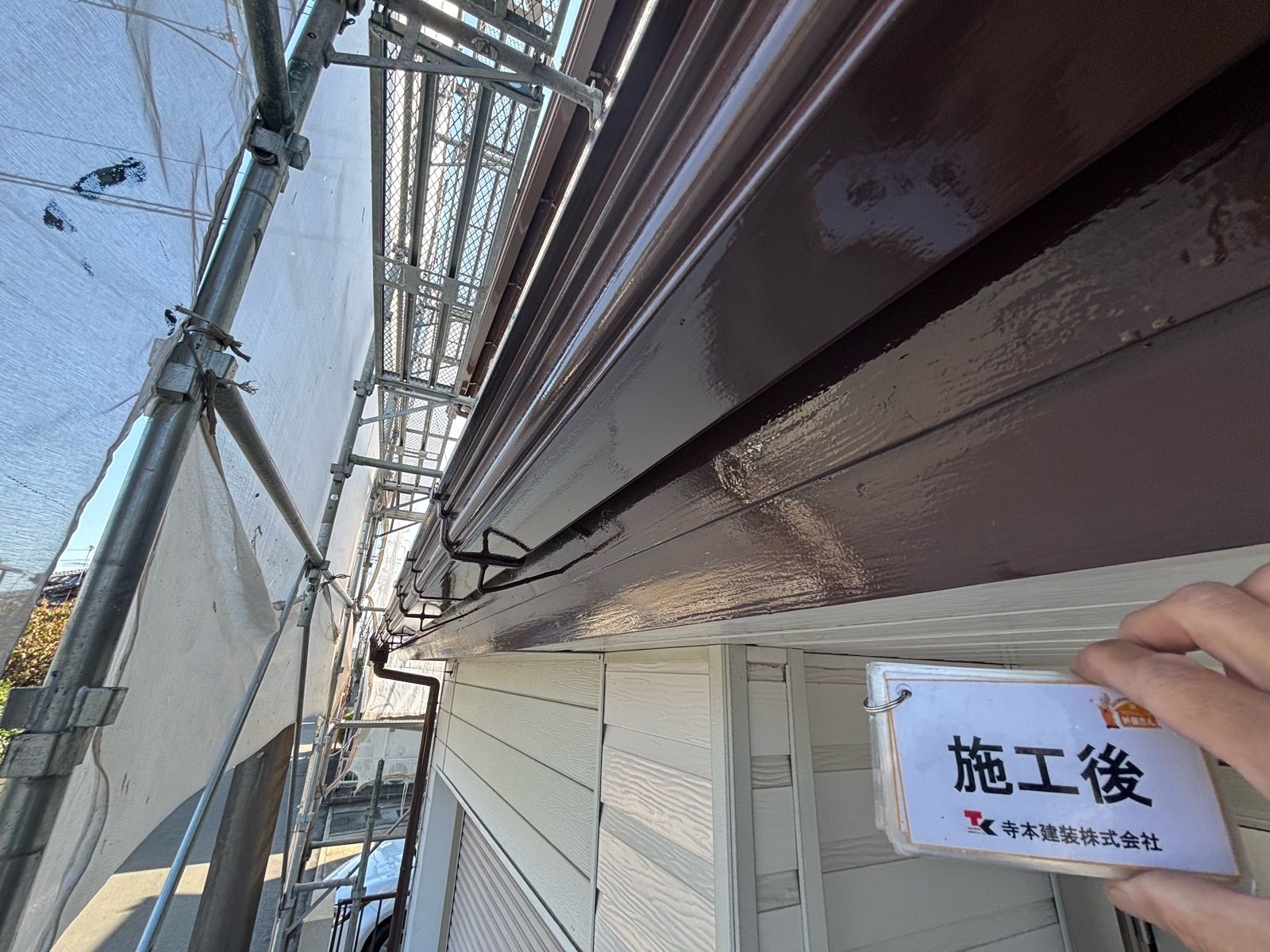 また、雨樋と鼻隠し板については、もともとの雰囲気に合うよう 茶系の落ち着いたカラー で仕上げています。