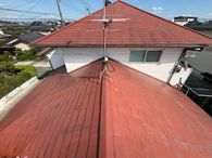 長い年月の中で、屋根はもともとの赤茶系のお色がすっかり退色してしまい、防水性の低下も心配な状態でした💦