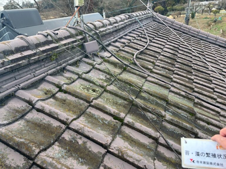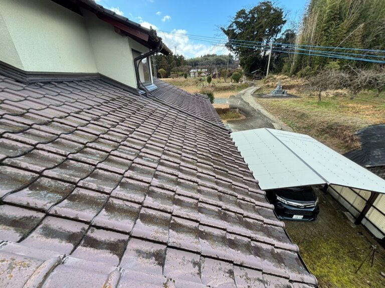 施工前の屋根は、経年劣化により苔やカビが多く発生し、美観性だけでなく防水性や耐久性の低下が心配される状態でした。